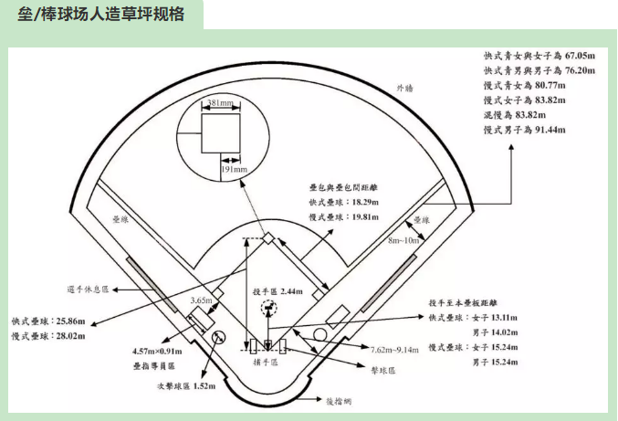 3、投手區(qū)半徑:2.44m(適用快壘)