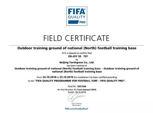 由 北京火炬生地人造草坪有限公司 與 內(nèi)蒙古今銳體育發(fā)展有限公司 共同打造的, 國(guó)家(北方)足球訓(xùn)練基地室外訓(xùn)練場(chǎng),通過 FIFA(國(guó)際足聯(lián))足球場(chǎng)草坪質(zhì)量檢測(cè),獲得 FIFA Quality Pro 認(rèn)證!