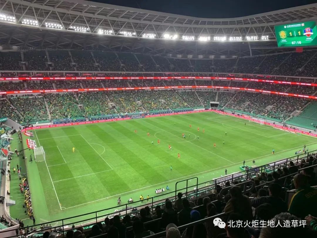 場內(nèi)現(xiàn)代化球場的氣息撲面而來,作為“全國首批、北京首座”國際足聯(lián)標準設(shè)計的專業(yè)足球場,新工體完全按照國際足聯(lián)關(guān)于專業(yè)足球場的標準進行設(shè)計施工,結(jié)合國內(nèi)現(xiàn)狀采用了全世界先進草坪構(gòu)造技術(shù)設(shè)計施工,以確保重大賽事時的草坪基礎(chǔ)性保障,對標世界杯、歐洲五大聯(lián)賽專業(yè)足球場。